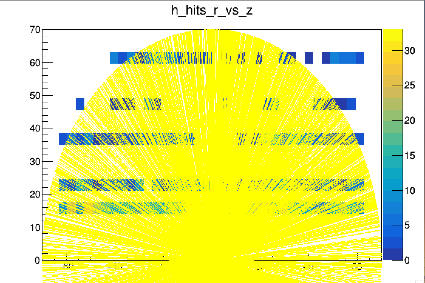 • Angles of all hits at 0 (pT/pZ) plotted for a few events (show)